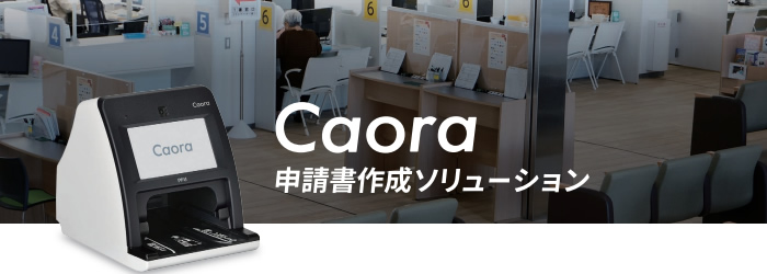 「Caora 申請書作成ソリューション」は、住民票などを取得するための様々な手続きで発生する申請書作成の際、記入の手間を省くことができる「書かない窓口」を実現するソリューションです。